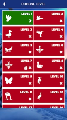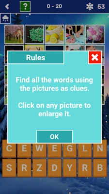 Arrange the letters at the bottom of the screen to make up the correct word, you can choose any of the 20 pictures on the screen to guess.