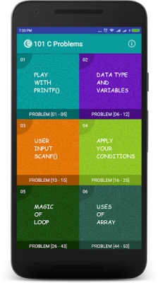 In this application we have accumulated 101 C programming practice problems for the beginner level students. By practicing all the problems one student can build strong logic base of problem solving. Solutions for all problems are given with the problems which are tested carefully. Almost all topics are covered regarding C Programming.