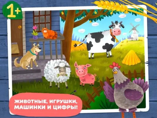 Общайтесь с малышом о животных, которых можно встретить в деревне или в лесу. Повторяйте звуки, которые издают животные. Попросите малыша принести игрушки, которые он увидит в приложении. Пусть он покажет свои щёчки или глазки, повторяя за мальчиком и девочкой. Задавайте ребенку интересные вопросы. На каком транспорте он уже ездил? Какая цифра ему больше всего нравится? Разговорите малыша и научите его рассуждать.