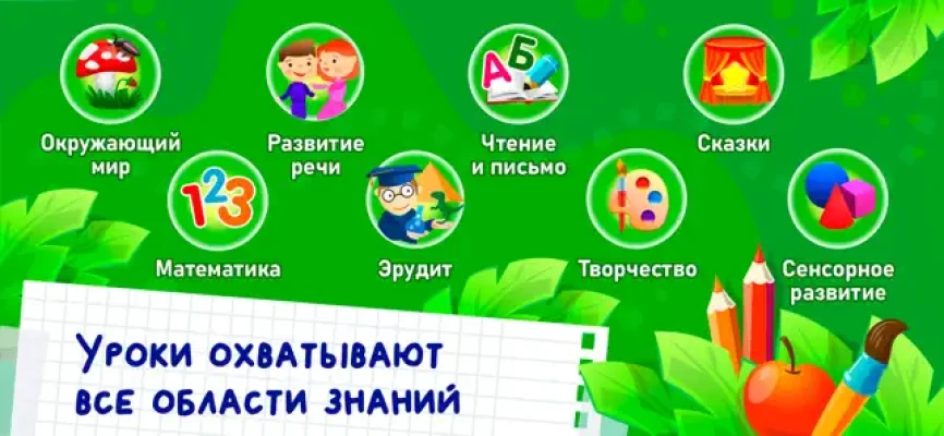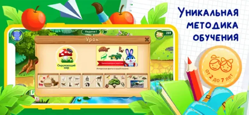 С помощью нашего приложения ваш ребенок узнает буквы и цифры, научится читать и писать, считать, рисовать, узнает очень многое об окружающем мире, будет развивать речь и словарный запас. Это не только отличная подготовка к школе, но и полноценное развитие детей от 2 до 7 лет, включая дополнительные направления, такие как: развитие логики, тренировка памяти и внимание, прописи.
