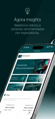 Abra sua conta pelo app Ágora, gerencie seu portfólio, acompanhe a rentabilidade dos seus investimentos, visualize movimentações e saldos.Acesse análises, recomendações de investimento e conteúdos no Ágora Insights. Tudo em um só lugar.Com uma experiência fácil e prática, você navega de forma intuitiva, seleciona as melhores oportunidades e investe de acordo com seu perfil e seus objetivos.No app Ágora, você encontra:- Grade completa de renda fixa, fundos e previdência privada.- Mais de 1700 opções de investimentos.- Informações detalhadas de cada produto.- Filtros avançados em todas as prateleiras para buscas informações e produtos de forma eficiente