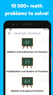 • Improve your math skills in fractions, geometry, algebra, decimals and roman numbers!