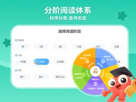 2.系统阅读体系:提供童书分级阅读、趣味互动阅读、好书绘本精讲、个性化阅读训练营、亲子阅读指导等五大阅读解决方案,让孩子科学阅读,有效提升孩子阅读能力;