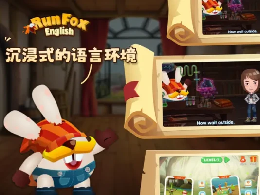 【身临其境】在RunFox的世界中,孩子就是冒险故事的主角,我们创新研发了300+趣味场景互动内容,让孩子完全沉浸其中,打造了一个天然的语言环境。