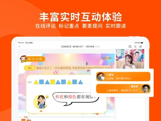 1. 支持手机,电脑,iPad上课,在家就能与老师互动;