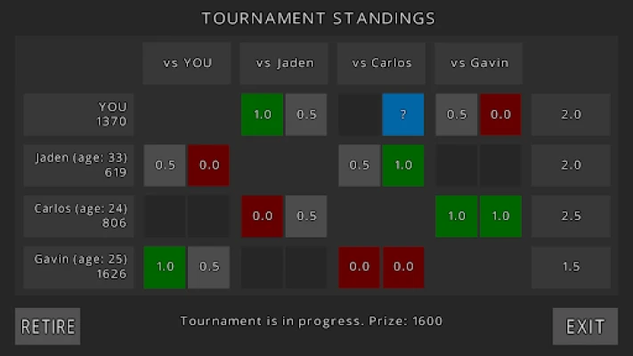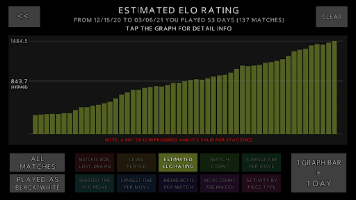 - Tournament mode with untimed matches against simulated opponents that are calibrated to your skills, are always available, move immediately and never cheat!