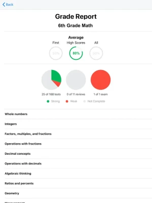 YourTeacher provides a complete 6th Grade Math curriculum with a personal math teacher. Search for the exact lesson you need or simply take the course from start to finish. Every lesson features video instruction, guided practice, tests, background modules, diagnostic quizzes, worksheets, notes, and more. Track your progress with our dynamic grade report and use the chapter reviews and final exam to solidify your knowledge.