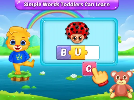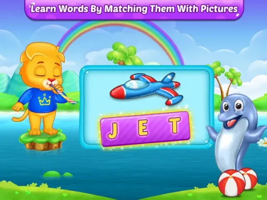Kids spell out the name of the picture using letters on the screen. There’s just one catch, though: all the letters are jumbled up!