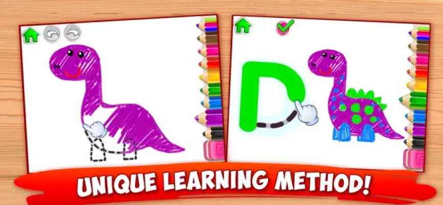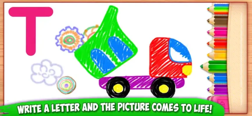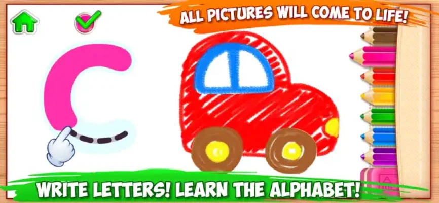 While playing the unique learning game "Draw Letters!", your child will easy learn to recognise the entire alphabet, write letters and – of course – to draw! All while having tons of fun!