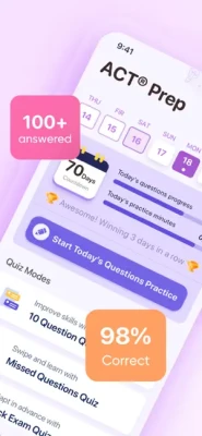 The most important part of passing the ACT® is to keep practicing and not lose confidence in the test. You will find that each time you practice on the ACT® Exam Prep 2025 app, your knowledge of the exam increases, thus increasing your certainty of passing the exam.