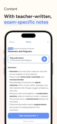 - Audio lessons for on-the-go revision