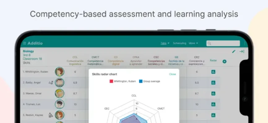 Additio for Teachers: you can use all the functionalities Additio App offers, unlimited. You can skill assess through key skills, specific skills and evaluation criteria. Also, you can use the multiple-device option and activate synchronization among the devices to keep your data with you wherever you go.