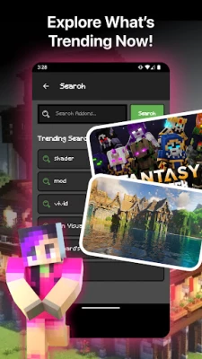 • Access a vast collection of Minecraft PE mods, addons, skins, maps, and shaders.