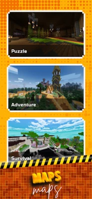 We have many popular mcpe maps such as Modern House, Raft Survival, Flat Lucky Worlds, Bayville, Parkour Craft, Skyblock, Poppy Playtime, Non-Euclidean Map, One Block