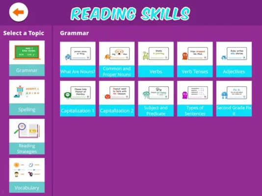 *More than 400 tutorial videos providing instruction on math topics like place values, fractions, algebra, and integers and reading topics like grammar, reading strategies, spelling, and reading comprehension.
