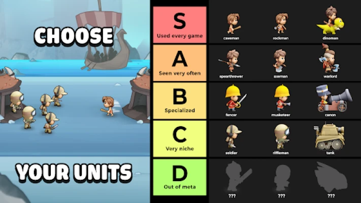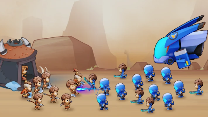 Evolve Your Army Through the Ages: Command warriors from cavemen to modern soldiers, each with unique abilities, as you progress through different eras of history.