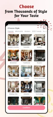 - Vast Style Library: Explore over 1000+ design aesthetics. From Scandinavian Minimalism to Industrial Chic, your perfect look is just a tap away.