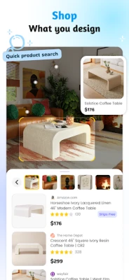 - Collaborate & Share: Save your favorite designs, create mood boards, and easily share them with friends, family, or a professional designer to get feedback.