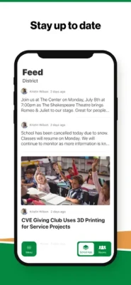 DISTRICT UPDATES In the Live Feed is where you'll find updates from the administration about what's going on in the district right now. Whether that's celebrating a student's success, or reminding you about an upcoming deadline.
