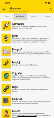 Akademia uygulamasının farklı çeşitlerde bir araya getirdiği makaleleriyle merak ettiğiniz tüm konularda aklınızdaki soru işaretlerini giderebilirsiniz. Akademia, bu anlamda tam bir mobil kültür havuzu diyebiliriz. Astronomiden coğrafyaya, biyolojiden biyografiye birçok farklı kategoride binlerce makale içeren uygulama, herkese hitap ediyor. Akademia ile binlerce makale her an cebinizde!