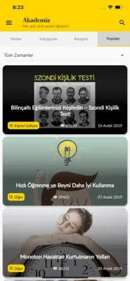 Uygulamadaki kategorilerden istediğiniz konulara bakabileceğiniz gibi popüler makaleler seçeneğinden en çok okunan makalelere de kolaylıkla ulaşabilirsiniz. Tüm zamanların en çok okunan yazıları arasında günlük hayatınızda gerekli olabilecek konularda bilgi sahibi olabilir, hayatınızı kolaylaştırabilirsiniz. En çok merak edilen konuları da uygulamanın bu bölümünden hızlıca bulabilirsiniz.