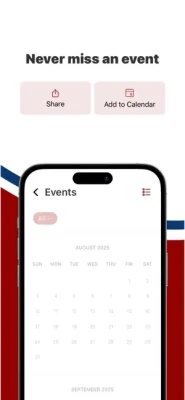 NEVER MISS AN EVENT The event section shows a list of events throughout the district. Users can add an event to their calendar to share the event with friends and family with one tap.