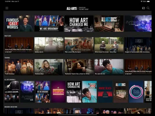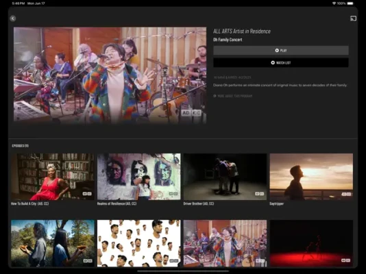 ALL ARTS is a free streaming app dedicated to arts and culture. Watch original and acquired programs across genres, ranging from the experimental to the established, including dance, film, literature, music, theater, visual art, design and more.