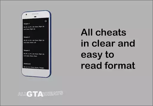 All GTA Cheats provides quick and easy access to every cheat code for every GTA game that has been released, on all consoles and platforms. No internet connection is required.