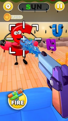 Enjoying just shooting fun? Here is the next coming mode with fps survival form abc monsters. Monsters are wandering and ready to attack you when you will start shooting, you need to be careful, shoot the rainbow monsters to make the exact word lined above at the top. You will be striked back with wrong alphabets while shooting and mission will be failed in wrong charactering shooting clicks. So the adventure is here in aiming the right character with fps survival skills.