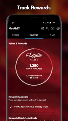 AMC Stubs: Log into your AMC Stubs account to earn and track points and rewards. Access your virtual card and scan it at the theatre to apply your savings and rewards instantly. A-Listers can make FREE movie reservations and Premiere members enjoy waived online ticketing fees.
