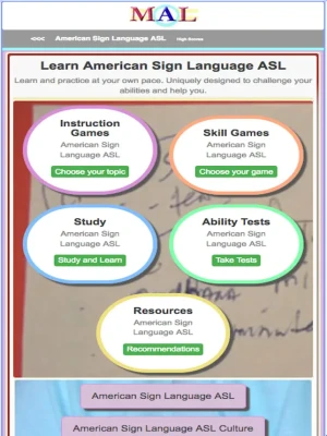 Play American Sign Language ASL Learning Games, Study and Learn with online Flash cards, Take American Sign Language ASL Tests