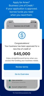 With your Business Blueprint app, you can also take loans, transfer money, and pay vendors, depending on which American Express products you have.