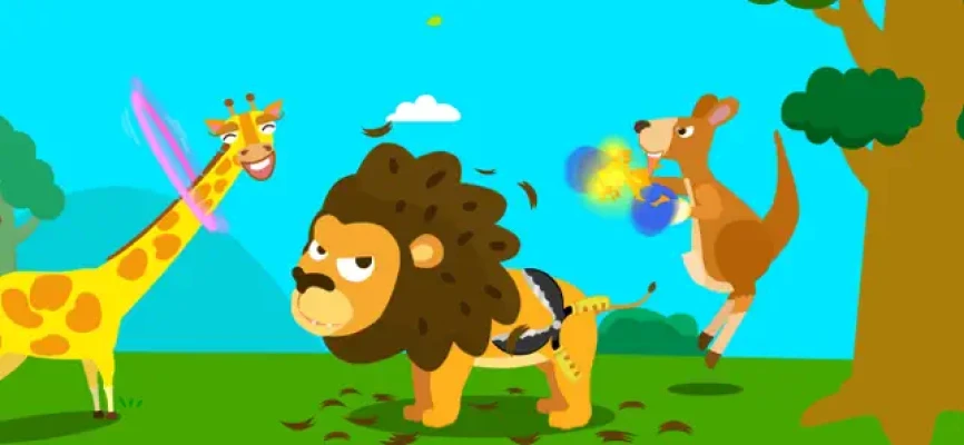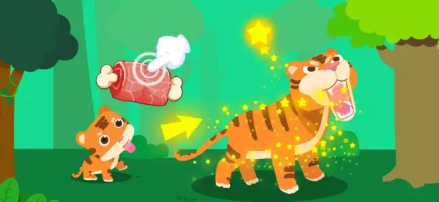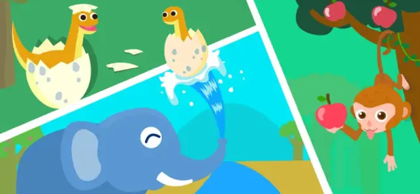 A little dinosaur, a young penguin, a little rabbit, a funny monkey, a tall giraffe, a powerful lion, a fierce tiger, a huge elephant, a small sheep, a naughty kangaroo, a cute cow, a strong camel, a beautiful cat, a big hippo and a friendly dog. All these new friends are waiting for you to feed them. Take care of the animals and see what happens.