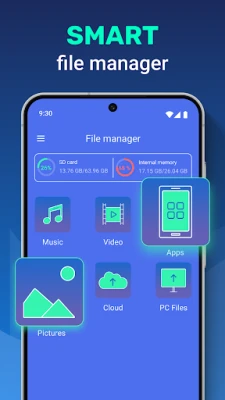 ● File manager - useful instrument for file management on your device. Wireless connection to any other device.