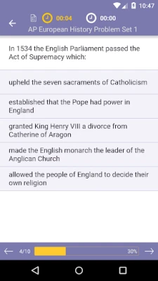 Varsity Tutors' AP European History Android app offers powerful free tools for AP European History including full-length diagnostic tests, flashcards, questions of the day, and more that can significantly aid you in your studying.