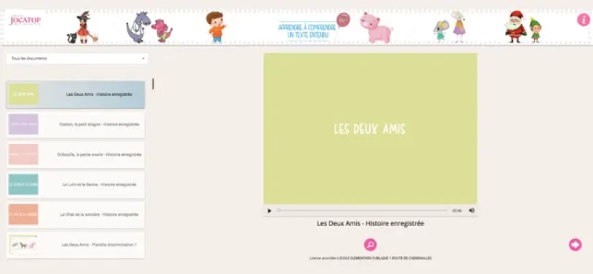 La seconde partie s'appuie sur 5 histoires originales qui seront lues par l'adulte. Chaque histoire est accompagnée d'outils (planches de discrimination, planches de reformulation, cartes personnages) pour aider l'enfant à aller vers la compréhension du texte.