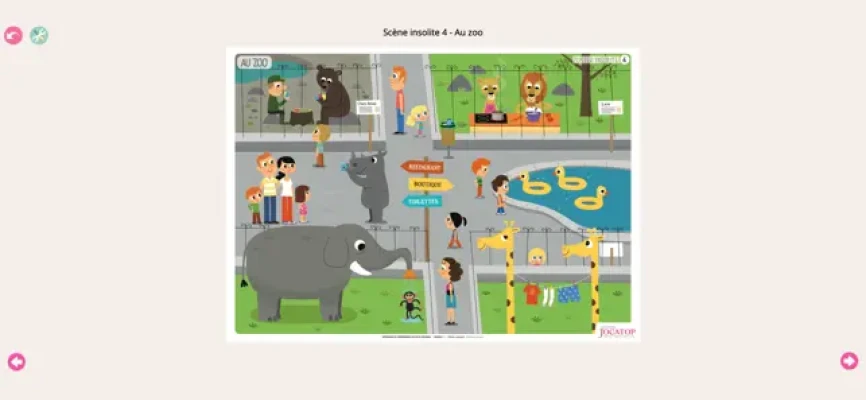 La première partie de cet ensemble pédagogique met à disposition des jeunes élèves des images insolites créées à partir d'environnements familiers (dans la classe, au zoo, chez le médecin...). L'objectif est ici de faire la différence entre ce qui est insolite et ce qui ne l'est pas. L'élève doit expliquer, argumenter ses propositions, l'enseignant sera là pour l'aider à formuler ou à reformuler. Une autre série d'images amènera les élèves à comprendre l'implicite d'une situation. Cette première étape de travail se termine par la compréhension de textes courts (entre 3 et 5 lignes).