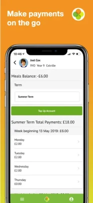 - Manage your child’s payment accounts and pay for meals or trips directly