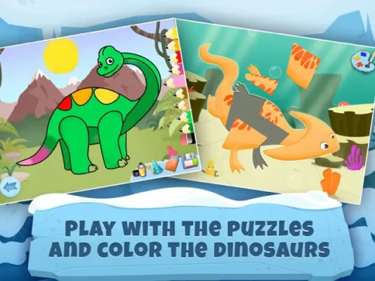 They will learn about dinosaurs with puzzles and sound effects and can color the characters using a magic brush.