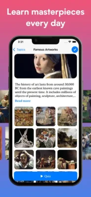 Improve your knowledge of visual art history. Learn the Western art history. Study the basics of Impressionism, Modernism, Renaissance etc. Guess who is the artist of masterpiece in a quiz!