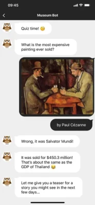 You are offered the chance to chat with a wise owl chatbot: don't miss it! Also includes a gallery to view HD paintings