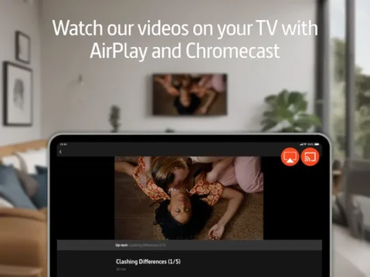 If you have a Chromecast key or Apple TV you can connect the ARTE app to your TV screen. Just click on the ‘Cast’ icon in the video player.