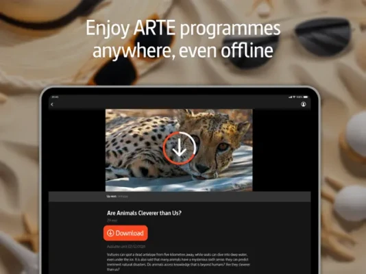 With our download option you can now watch ARTE programmes offline. That means on the plane, on the beach or wherever you like. Download videos by pressing the download button (before you go off grid). Your downloads are stored in your “MyARTE” space for 72 hours and are accessible abroad.