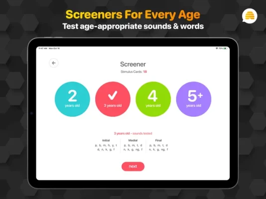 Assesses the sounds and words that are developmentally appropriate based on age.