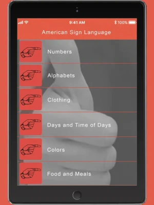 ASL app for beginners consists of a huge array of signs accompanied with clear images describing the respective action . The signs have been organized into various sections which start with basics such as alphabets and numbers. The list of sections further goes on to include greetings , question words , days and time of the day , clothing , family members and people , emotions , colors , meals , health , opposites , nature and the weather , sentence formations and more . Sign language for beginners also includes a brief history , certain facts and myths about sign language . It includes quick links to an add free Pro version .
