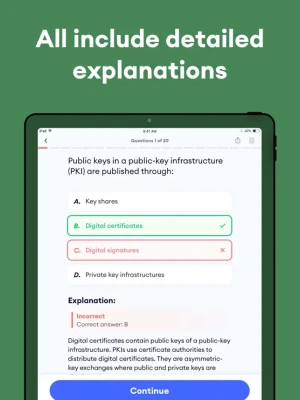All the features we provide are for your practice or study before the exam only. Your success on these questions or quizzes does NOT necessarily mean that you will pass the certification or that you will perform well on the exam.
