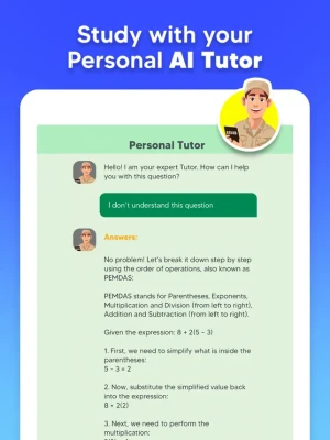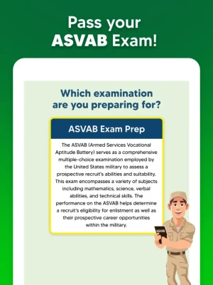 Introducing our cutting-edge AI feature powered by ChatGPT, designed to enhance your ASVAB exam preparation journey. With this innovative tool, you'll receive real-time, personalized assistance on the most challenging and perplexing exam topics. Our AI, trained on the latest exam content, integrates seamlessly into the question interface, offering detailed clarifications on both correct and incorrect answers, and providing further guidance to deepen your understanding. Whether you're grappling with complex concepts or seeking to refine your knowledge, our AI companion is here to support you every step of the way, ensuring you're fully prepared to ace your ASVAB (Armed Services Vocational Aptitude Battery) exam.