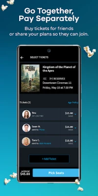 • PLAN A MOVIE NIGHT: Invite friends, pay separately and send your seat assignment with a few taps. No more group texts.