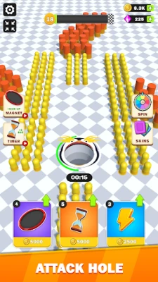 In Attack Hole players take control of a voracious black hole, hunting down the entire arsenal laid out in the expansive hall. The concept is simple but the challenge is intense - can you swallow all the arms down the hole before time runs out? Picture yourself as a cosmic vacuum cleaner, sweeping through the battlefield and leaving nothing behind.
