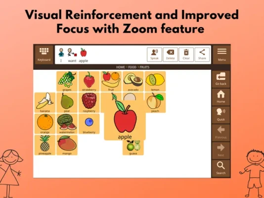 Designed to aid language development, by presenting core words, which make up 80% of everyday speech, in a research-based order. This enables users to progress from using 1-2 word phrases to forming complete sentences.